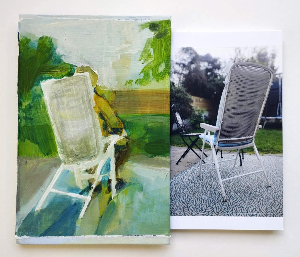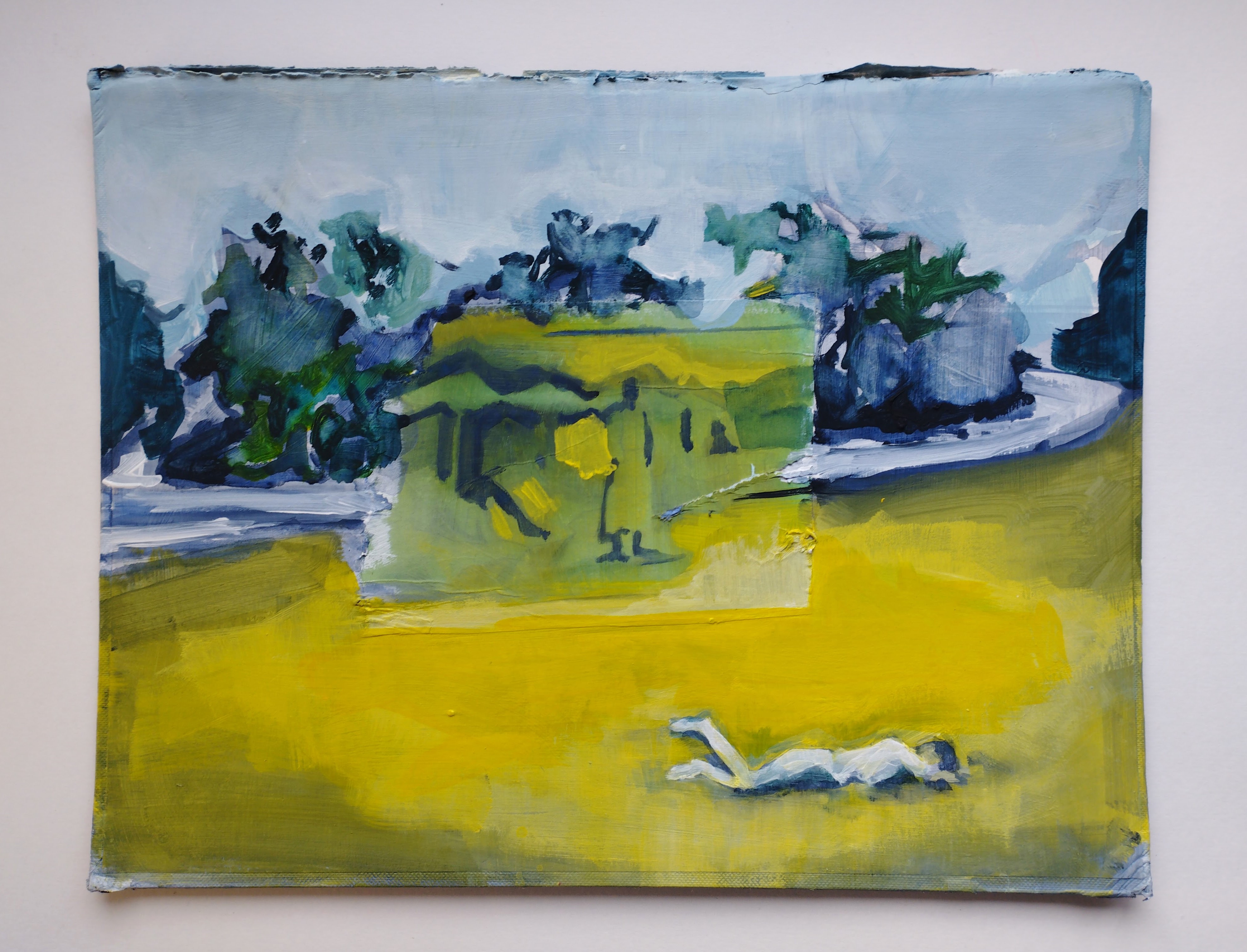 Lounger, oil and acrylic on book cover (13 x 20 cm)