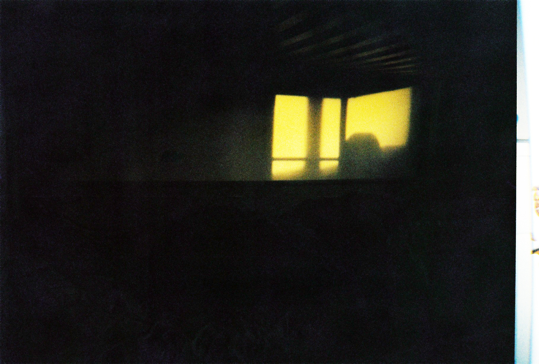 I had just finished a monotype of my son holding the instant print camera he received for Christmas. In the 35mm photograph I worked from, he is bare-chested, looking over his shoulder, out of the window. The pictures from his little camera, ticket-sized and fragile, feel inherently disposable. I like holding them, a cheap version of a Polaroid. I suggested we make a scrapbook, but instead they drift through the house. I find them under the sofa, on the stairs, behind doors. I move from room to room like Hansel and Gretel, gathering the trail, slipping them into a white envelope.